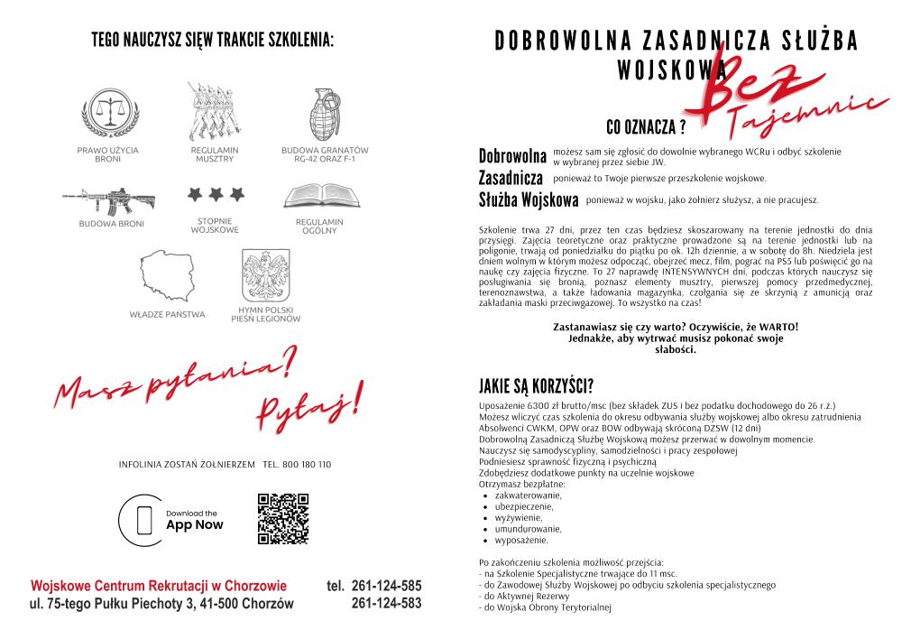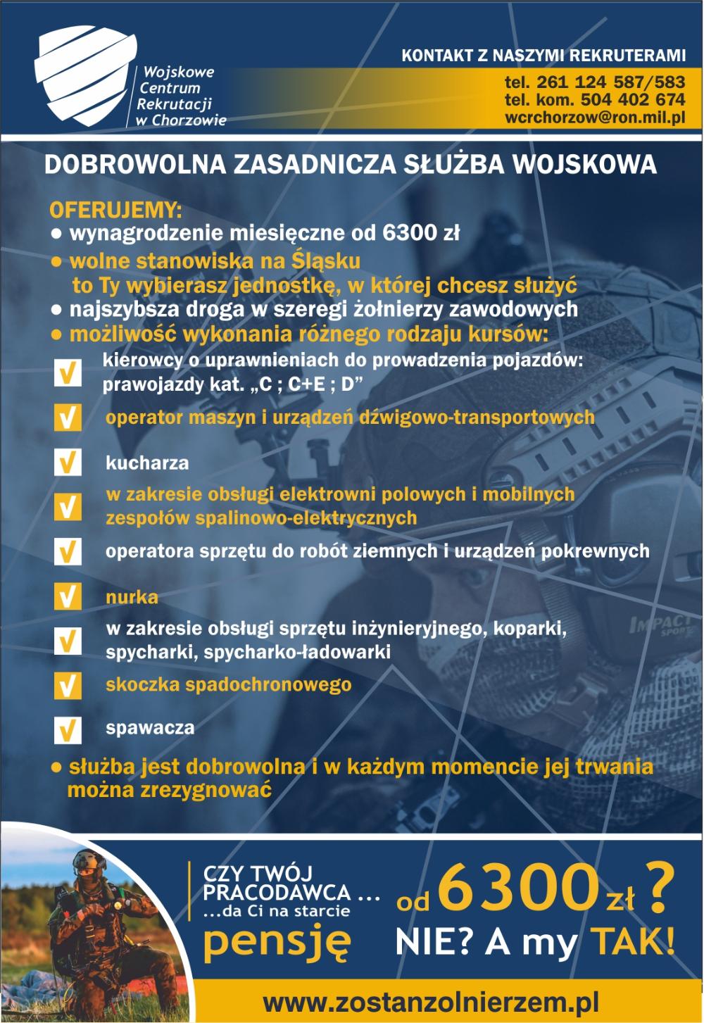 Informacje szczegółowe dostępne na stronie internetowej: https://wcrchorzow.wp.mil.pl/ oraz w mediach społecznościowych http://facebook.com/WCRChorzow/?locale=pl_PL