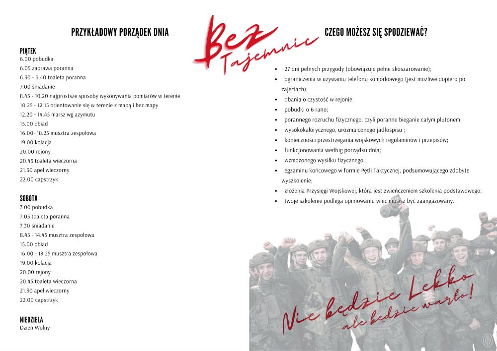 Wojsko Polskie umożliwia pełnienie służby ojczyźnie, która daje szansę rozwoju zawodowego oraz sprawdzenia się. Ministerstwo Obrony realizuje cyklicznie szereg programów szkoleniowych i edukacyjnych, które dają szanse przeszkolenia różnym grupom wiekowym.